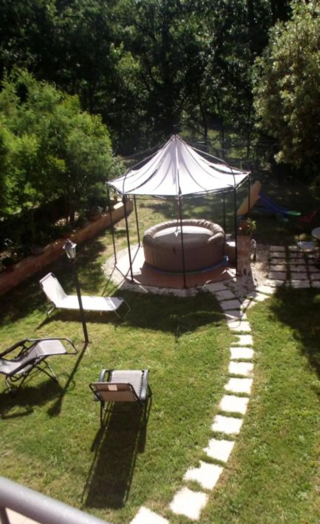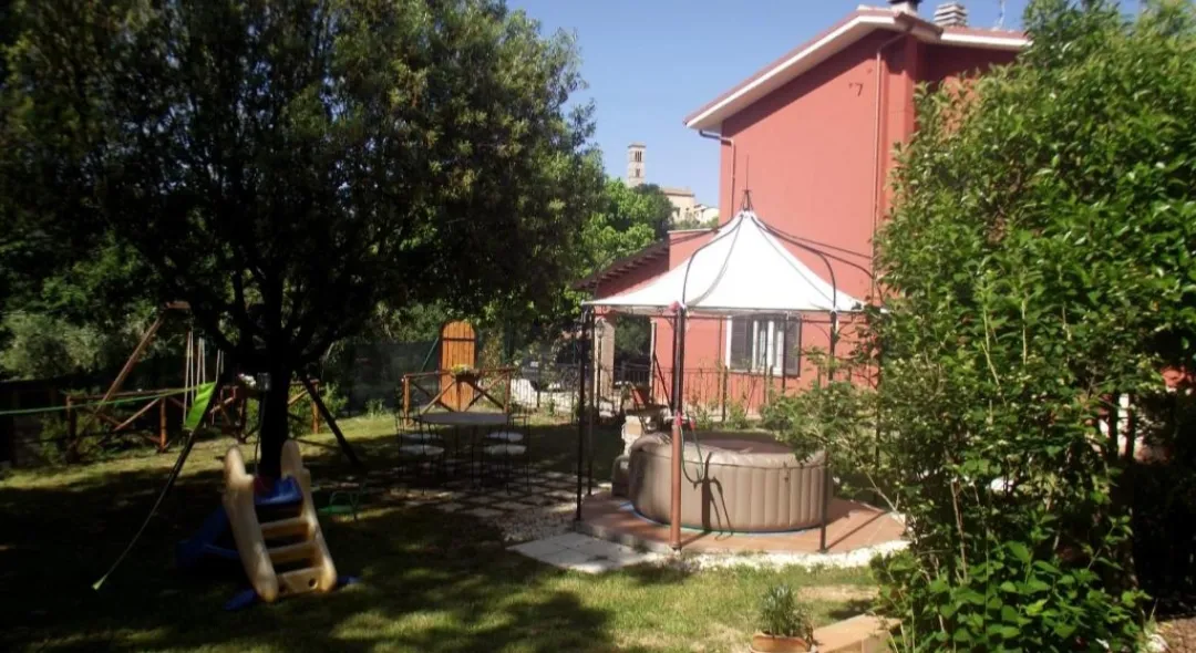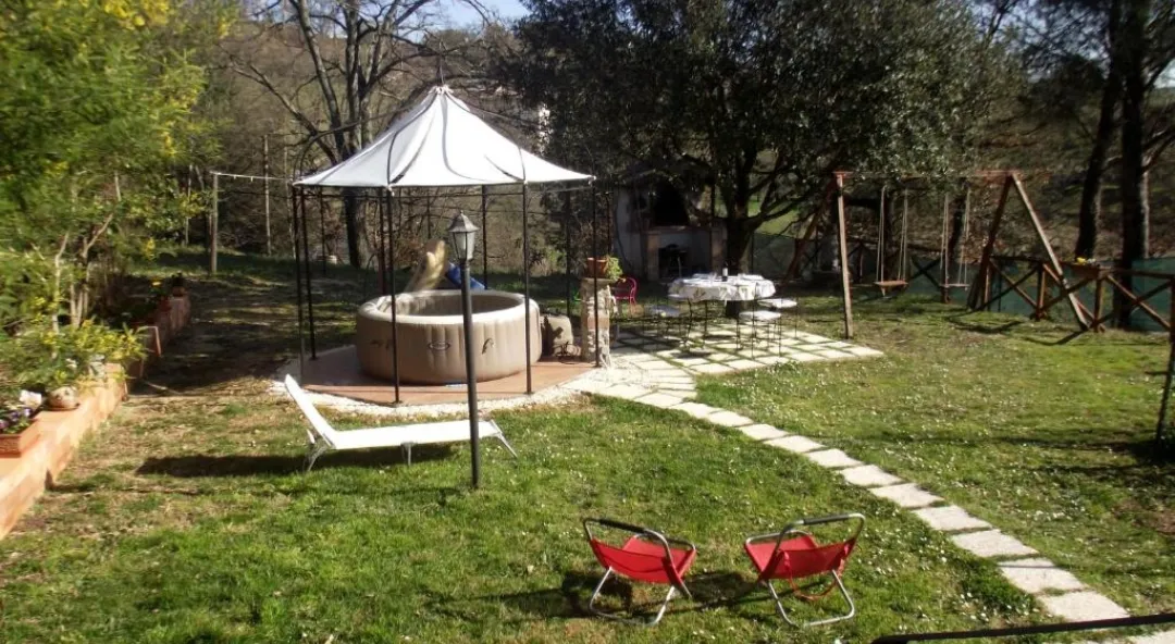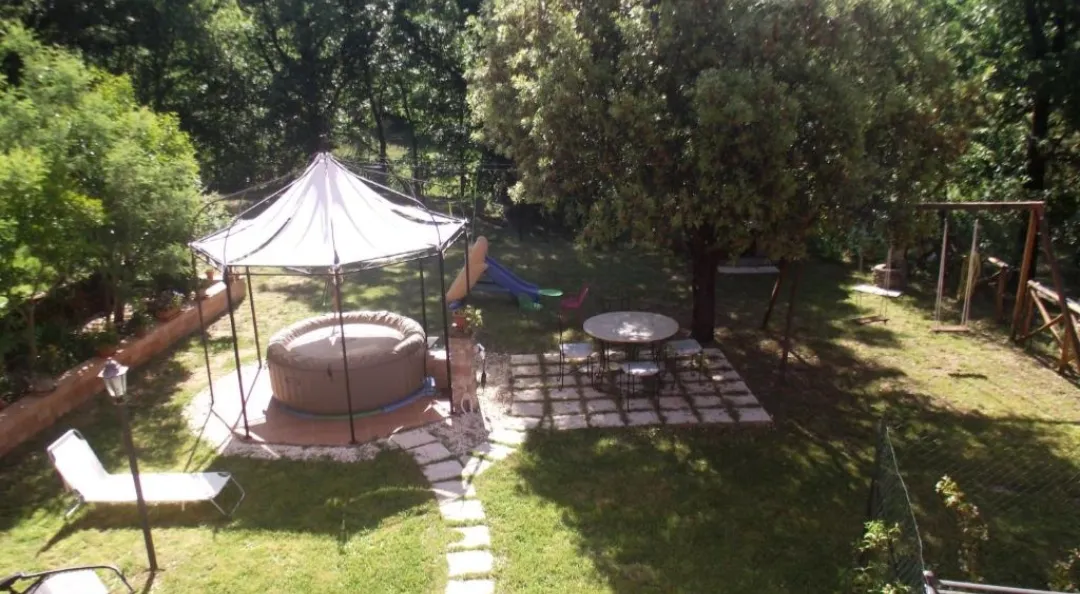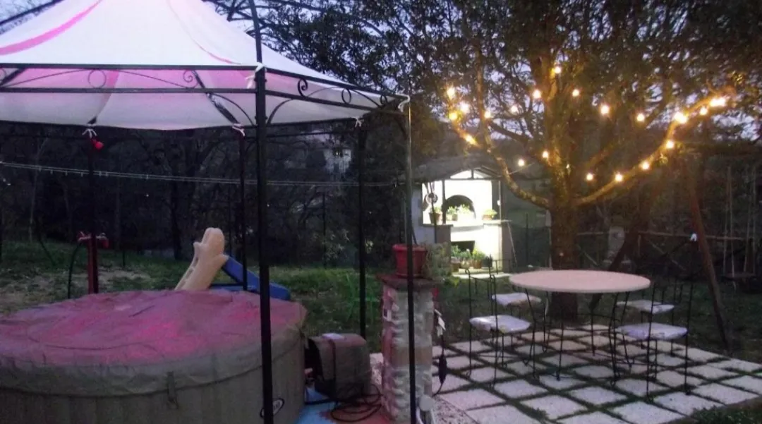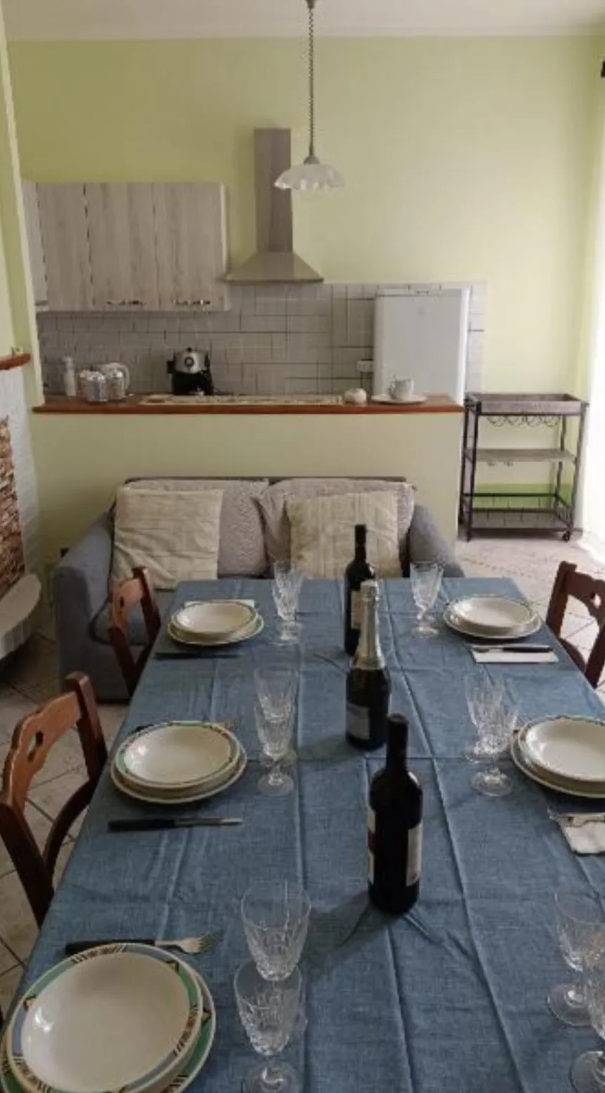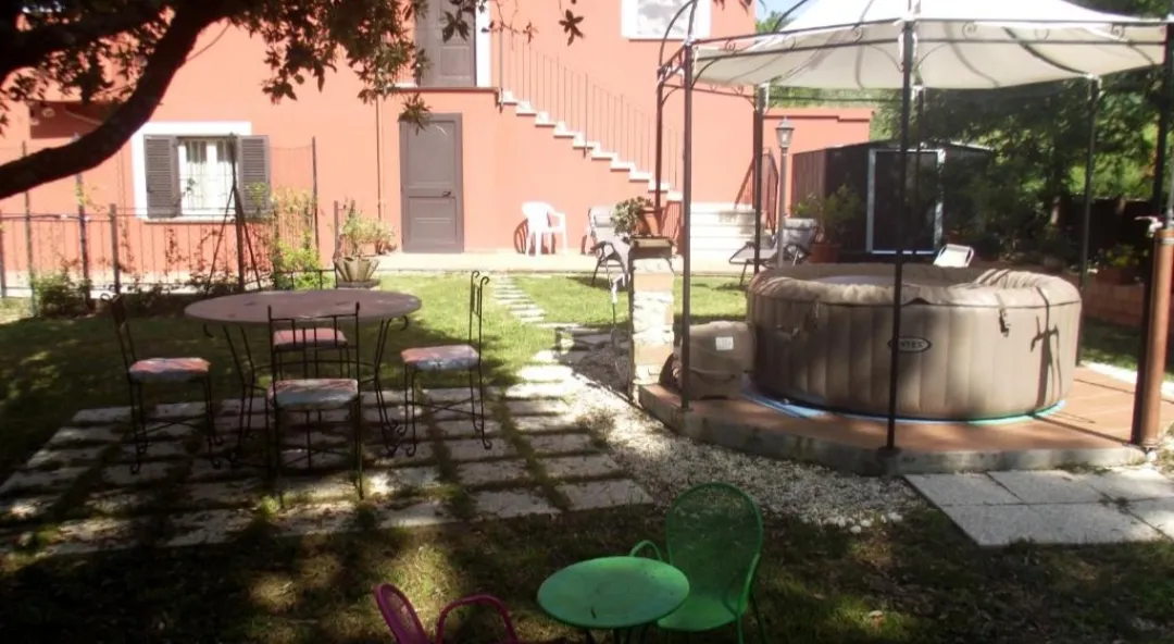 Posto al primo piano con condizionatori, soggiorno con smart tv, cucina attrezzata ( macchina caffè,bollitore, fornelli, forno, frigo,ecc ..), prima camera con letto matrimoniale, seconda camera un matrimoniale e uno singolo, 1 bagno con lavatrice, 200mq di giardino ad uso esclusivo con idromassaggio, barbecue, camino, lettini e sdraio,giochi bambini, ecc...